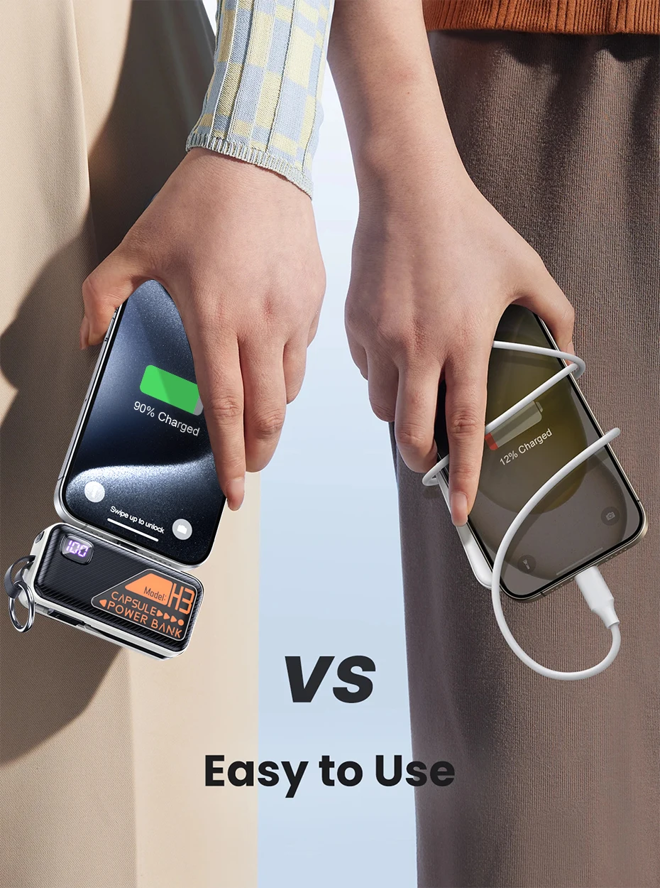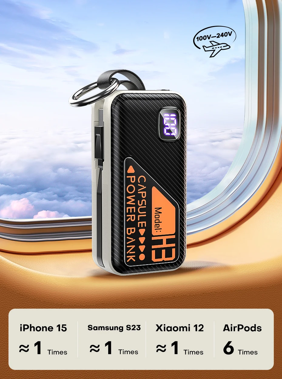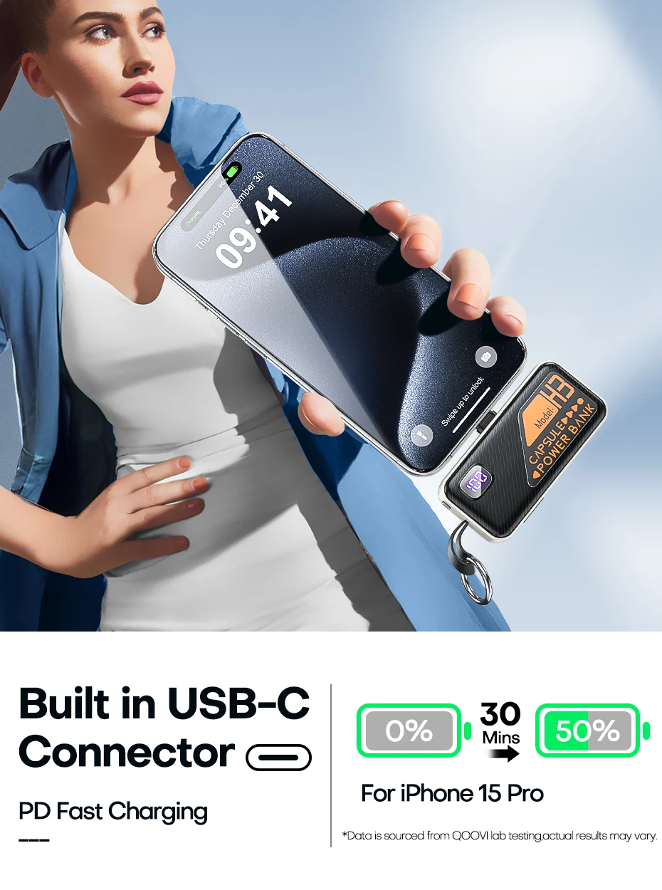 QOOVI Mini Power Bank 5000mah Built-in Cable PD 20W Portable Charger Fast Charging for iPhone 15 Samsung Xiaomi External Battery