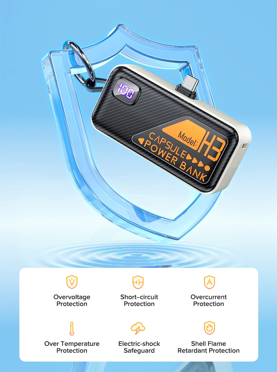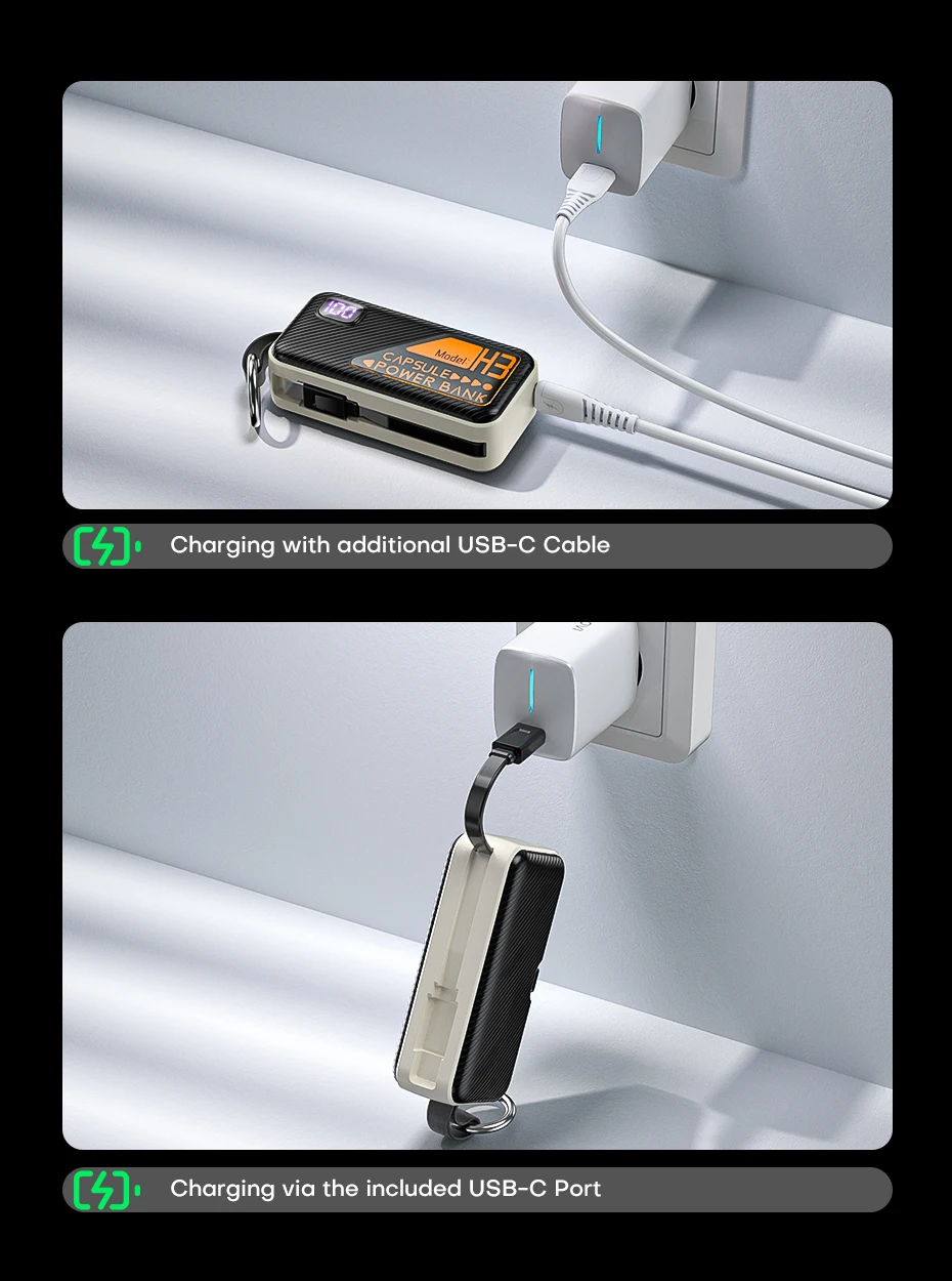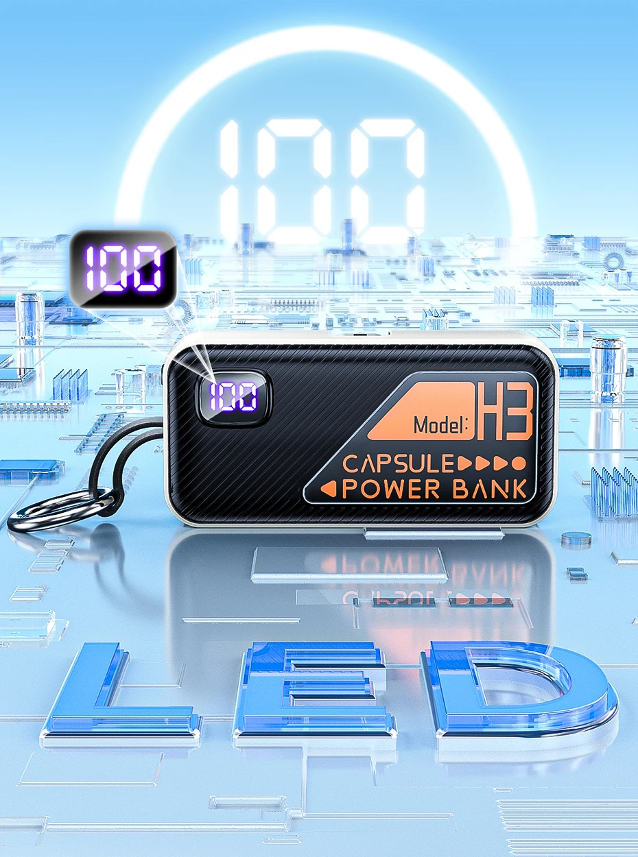QOOVI Mini Power Bank 5000mah Built-in Cable PD 20W Portable Charger Fast Charging for iPhone 15 Samsung Xiaomi External Battery