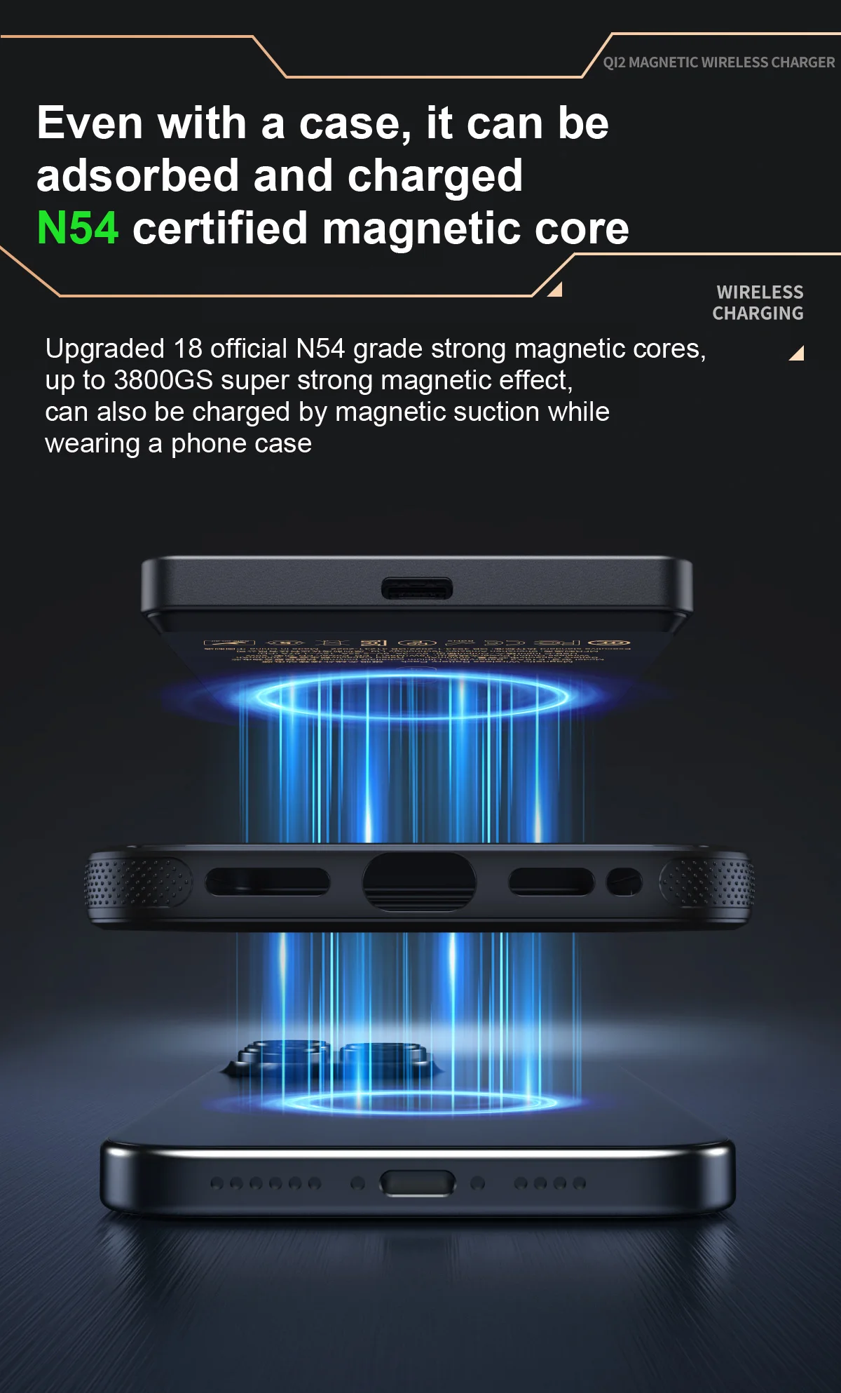 12N جاذبية مغناطيسية قوية للغاية، مستقرة وآمنة وموثوقة (حتى مع حافظة الهاتف، يمكن امتصاصها بالخرز)