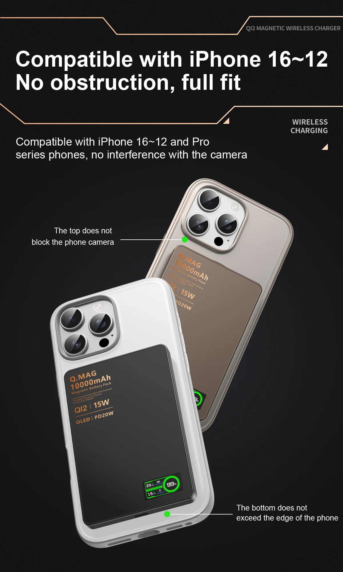 7.وهو يدعم الشحن اللاسلكي المغناطيسي لجميع سلاسل iPhone 16~12، بالإضافة إلى أحدث جيل من هواتف Huawei وXiaomi والساعات وسماعات الأذن. مع الشحن اللاسلكي التعريفي التلقائي